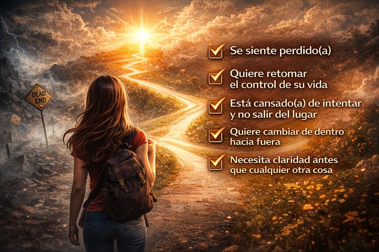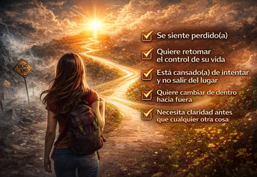 Sin promesas vacías. Solo claridad, conciencia y pasos reales para salir del modo supervivencia y volver a tomar el control de tu vida.